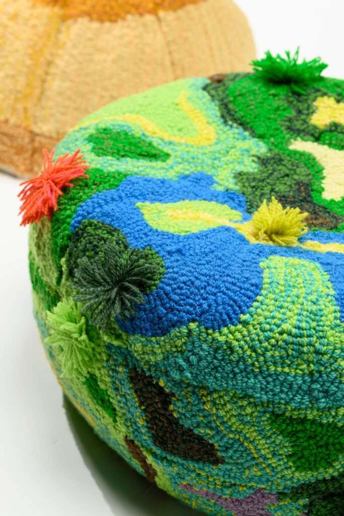 While “pouf” defines the base structure, each piece evolves into a distinct work through variations in form, color, and pattern.